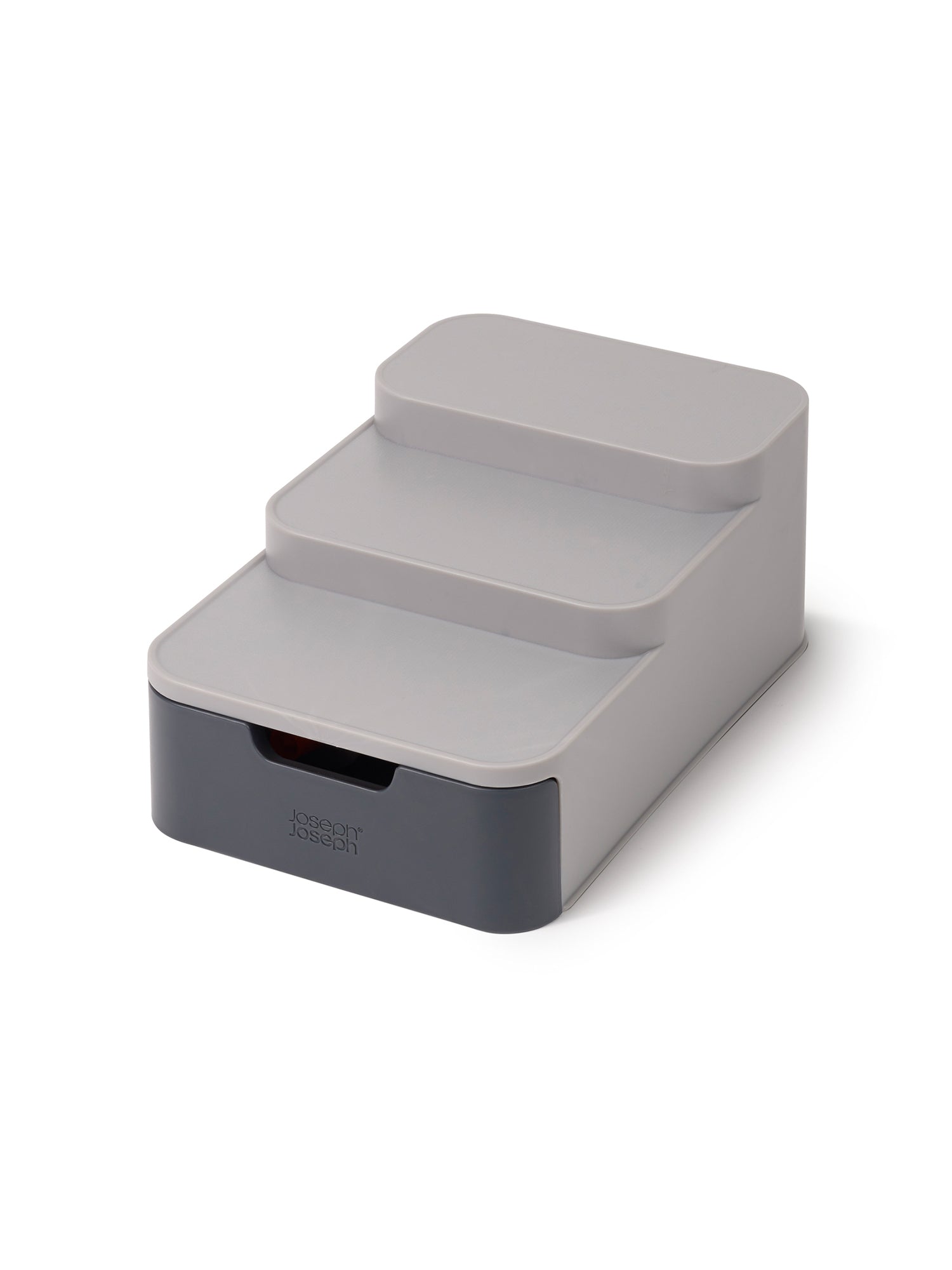 Net Qty :1 + Pack Includes+1 x Tiered organiser with drawer+ Material:Polypropylene+Colour:Grey