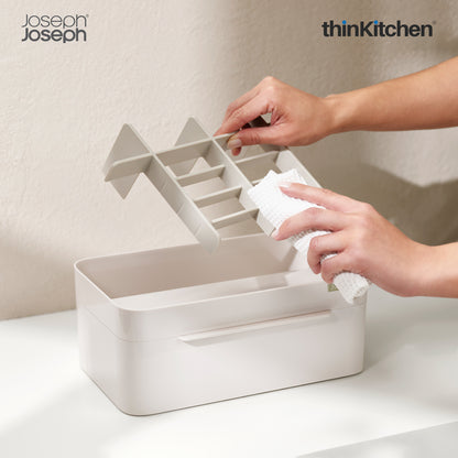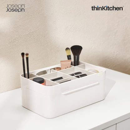 Bring order to your beauty essentials with the Joseph Joseph Viva Cosmetic Organiser — a sleek, stylish, and incredibly practical storage solution. Designed with deep and shallow compartments, this organiser holds everything from brushes and mascaras to blushers and eyeshadows. The easy-pull drawer provides additional space for cotton pads and buds.