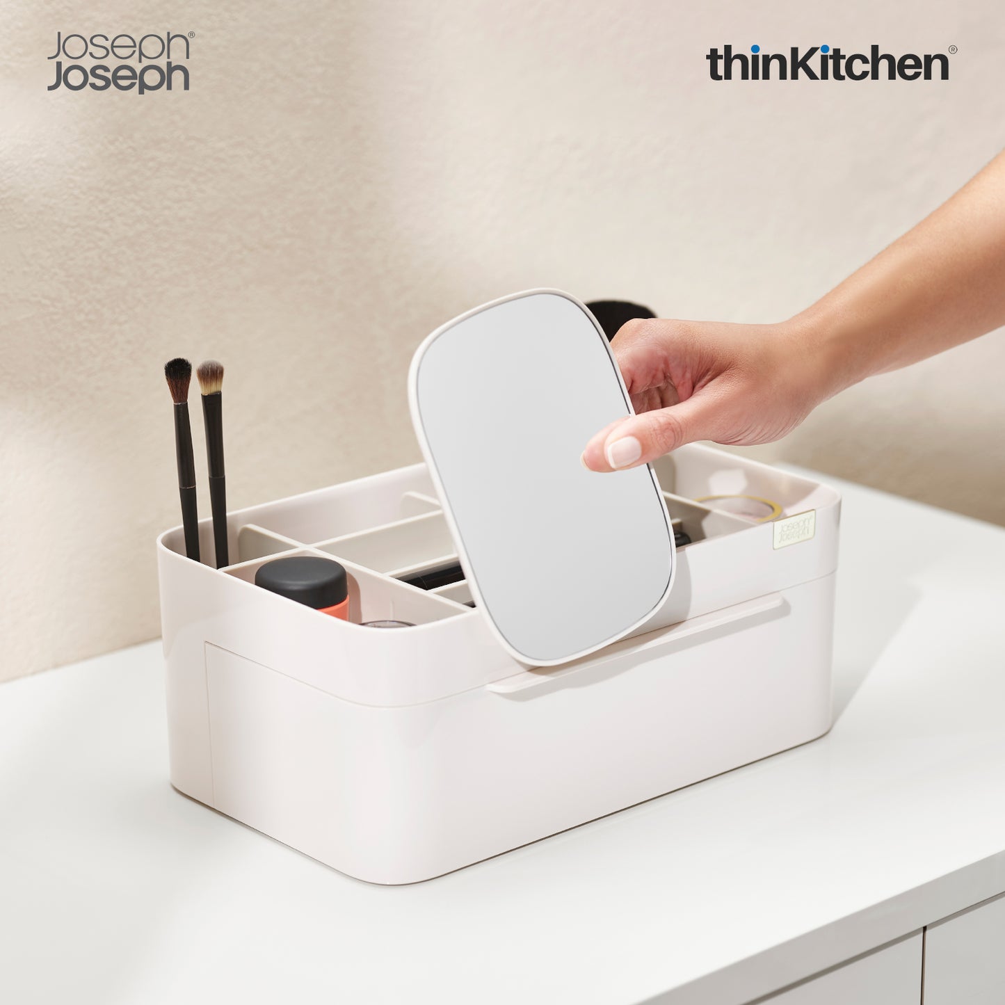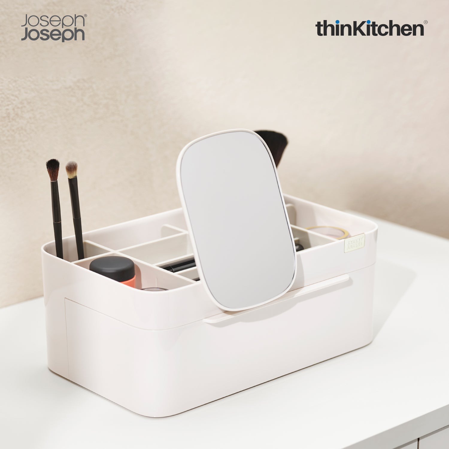 Joseph Joseph Viva Large Cosmetic Organiser with Removable Mirror – Makeup Storage Drawer with Magnifying Mirror, Brush Holder & Compartments – Premium Plastic, White