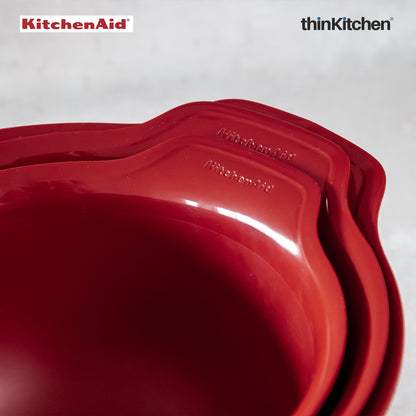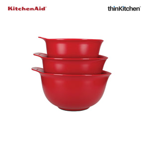 KitchenAid 3 Piece Mixing Bowl Set | Non-Slip Nesting Bowls with Pour Spouts | Microwave & Dishwasher Safe | Empire Red