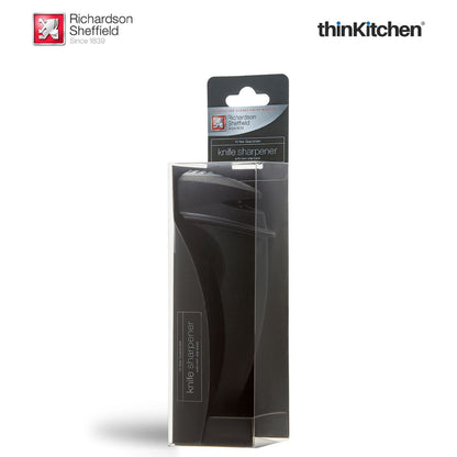 Ergonomically shaped handle: the soft-touch handle and the non-slip base provides a comfortable and secure grip Tungsten carbide: run blunt knives through this sharpener a number of times to sharpen your blades with ease This knife sharpener is the perfect companion to your knife collection. Simple to use, just pull the blade through the tungsten carbide sharpening slot to keep your knives in prime condition.