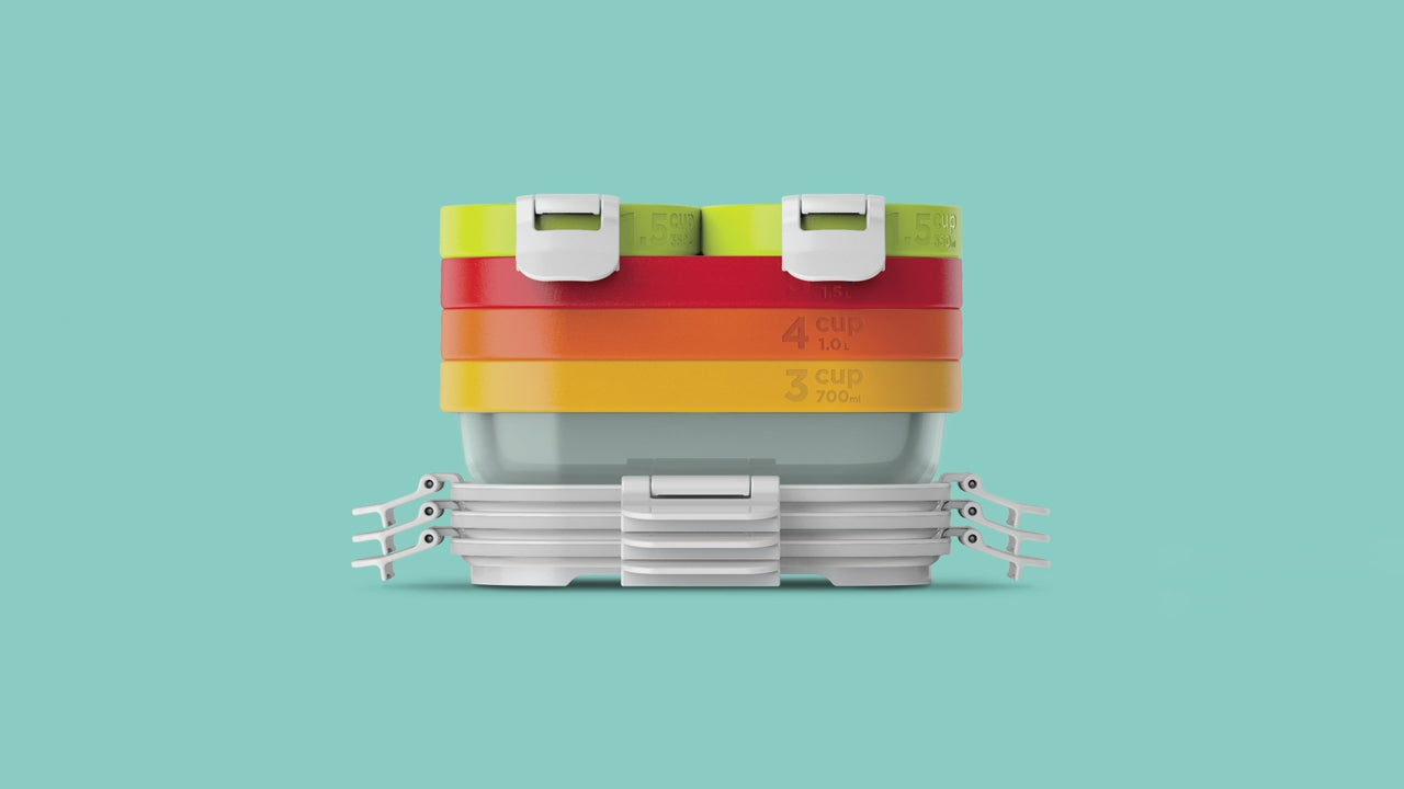 • LIGHTWEIGHT & STACKABLE: Nested food storage containers that stack easily and neatly to save space in the kitchen. Crystal clear plastic so you can see how fresh your food is throughout the day, and color-coded bands help you quickly find the size you need.