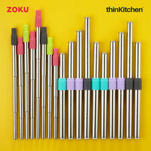 • ULTRA DURABLE - High quality silicone band for storage together. Zoku 18/8 stainless steel reusable metal straws are built to last